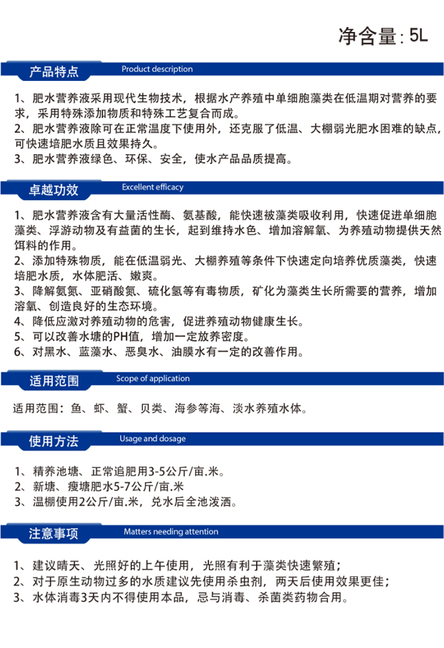【规格】5L【适用范围】适用范围:鱼、虾、蟹、贝类、海参等海、淡水养殖水体。